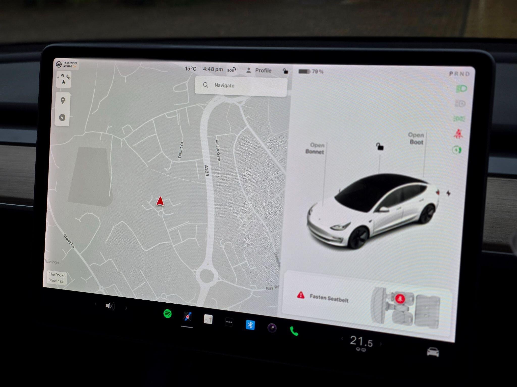 This 2021 Tesla Model 3 Standard Range Plus presents an exceptional ownership proposition with its remarkably low mileage of just 37,000 miles, having been cherished by only one owner. As a fully electric vehicle, it boasts a 53 kWh battery offering a maximum range of 278 miles when new. Charging is convenient, with a full charge at home taking approximately 7 hours and 10 minutes using a 7kW charger, while rapid public charging can replenish the battery from empty to 80% in as little as 29 minutes. This Model 3 also comes equipped with desirable features including heated front seats, Bluetooth connectivity for seamless audio and calls, adaptive cruise control for relaxed journeys, blind spot information to enhance awareness, and a fixed panoramic glass roof that floods the cabin with natural light.+